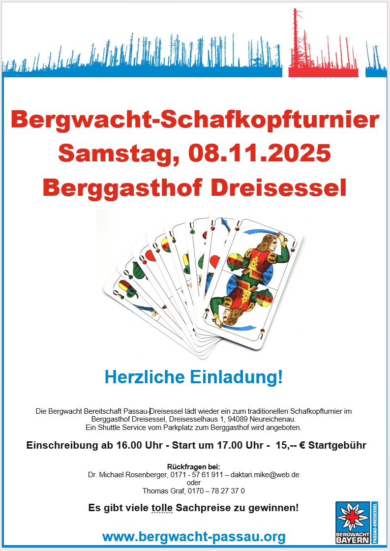 Die Bergwacht Bereitschaft Passau/Dreisessel lädt wieder ein zum traditionellen Schafkopfturnier im
